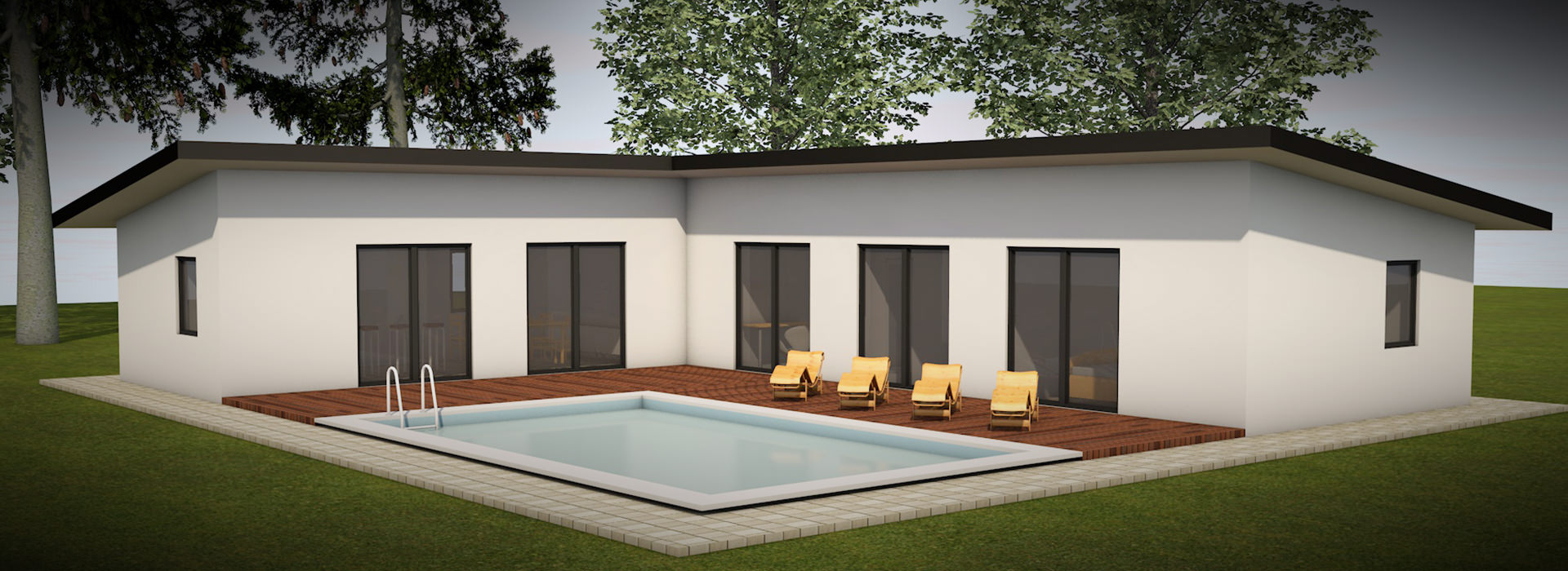 Hiša L130 je zasnova v obliki črke L. Oblika omogoča veliko dnevne svetlobe in teraso, ki je z dveh strani obdana s hišo, kar nudi družino malo zasebnosti. Načrt je razdeljen na dve lepo zasnovani krili. Eno krilo zajema pralnico, dnevno sobo, jedilnico in kuhinjo s shrambo. V tem delu je tudi dovolj prostora za ''home office'', ki postaja vedno bolj priljubljen kotiček.