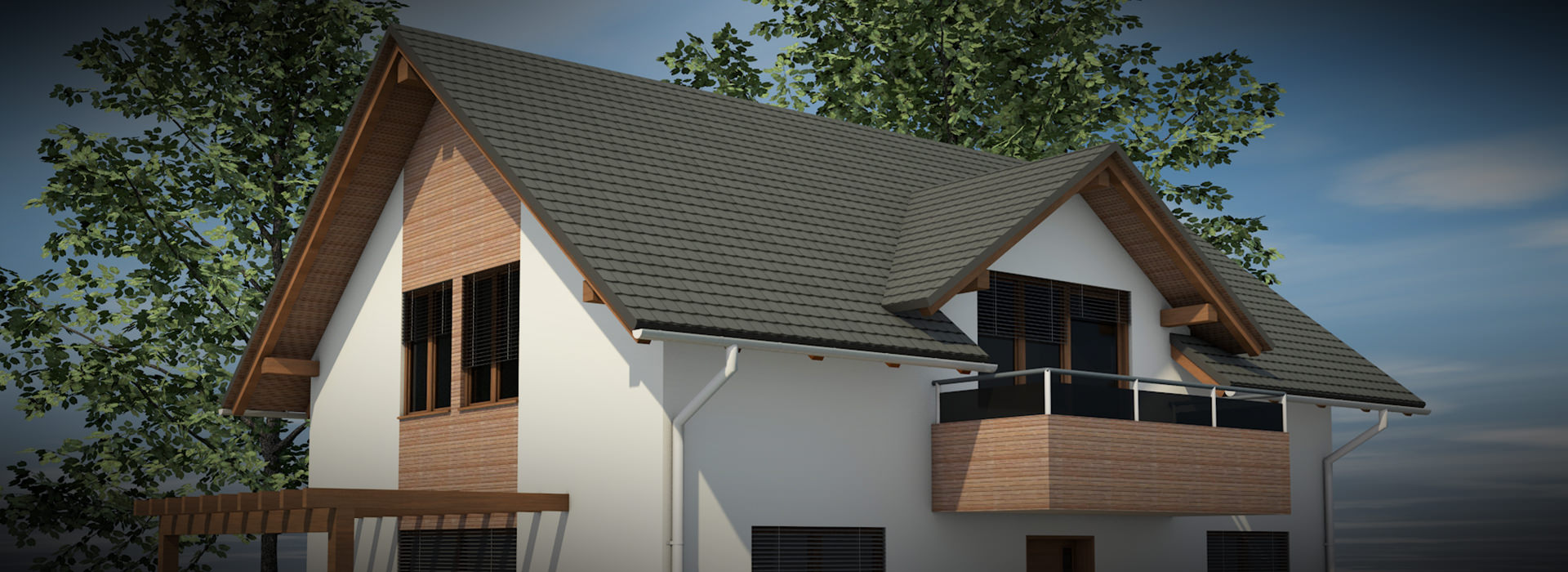 V mansardnem delu pa se nahaja dnevni prostor z izhodom na balkon, kabinet, kopalnica in dve razmeroma veliki otroški sobi. Zunanji izgled je klasični, kontaktno fasado in lesenimi dodatki, kar daje hiši dodatno naravno noto. Zaradi simetrije pa je možno hišo postaviti na vseh terenih, usmerjenost pa prilagoditi soncu.